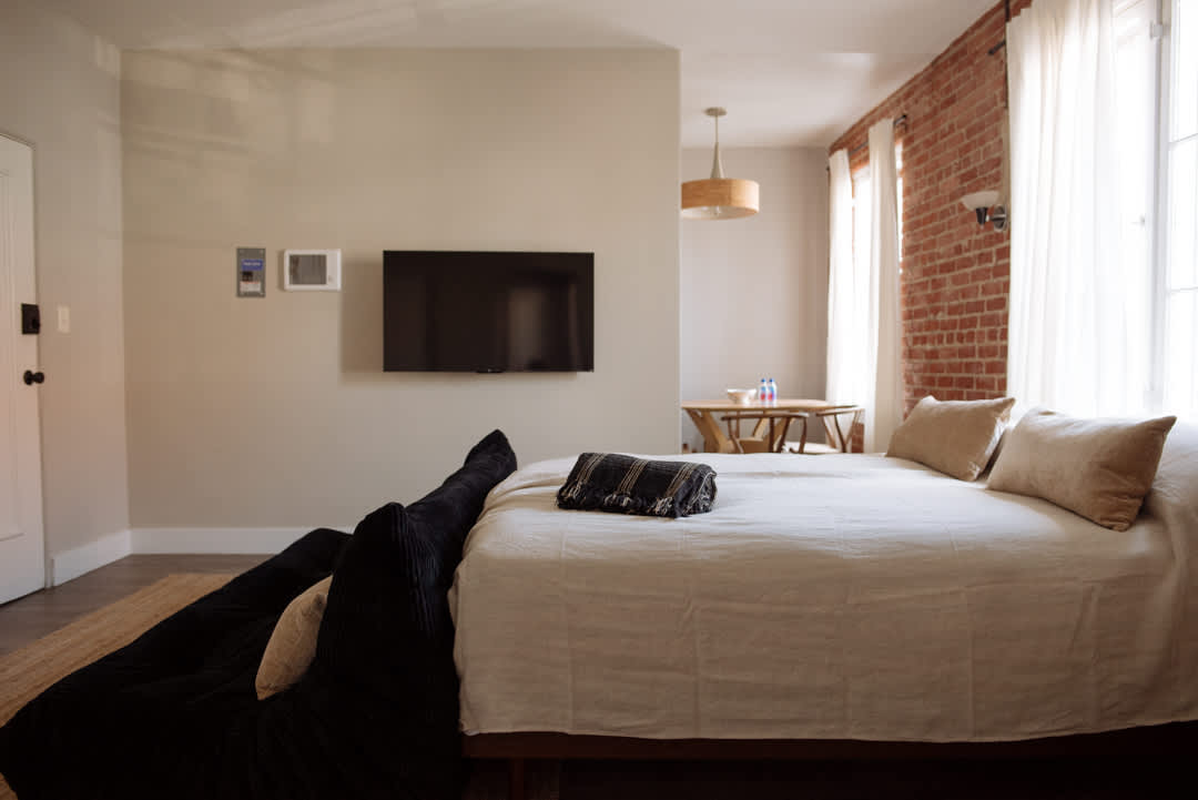 This comfortable and stylish studio offers everything you need for a convenient stay in Los Angeles. Enjoy a queen-size bed with soft cotton sheets and pillows, a cozy living area featuring a Togo-style sofa and lounge chair, and a bathroom stocked with 100% cotton towels. The kitchen comes equipped with basic appliances for easy meal prep (dishwasher not included), while a 40-inch Roku TV provides entertainment at your fingertips. With ample closet space, an on-site laundry room, dedicated management support, and an on-site representative, your comfort is always a priority.