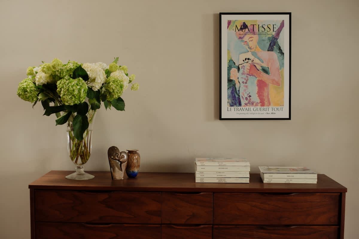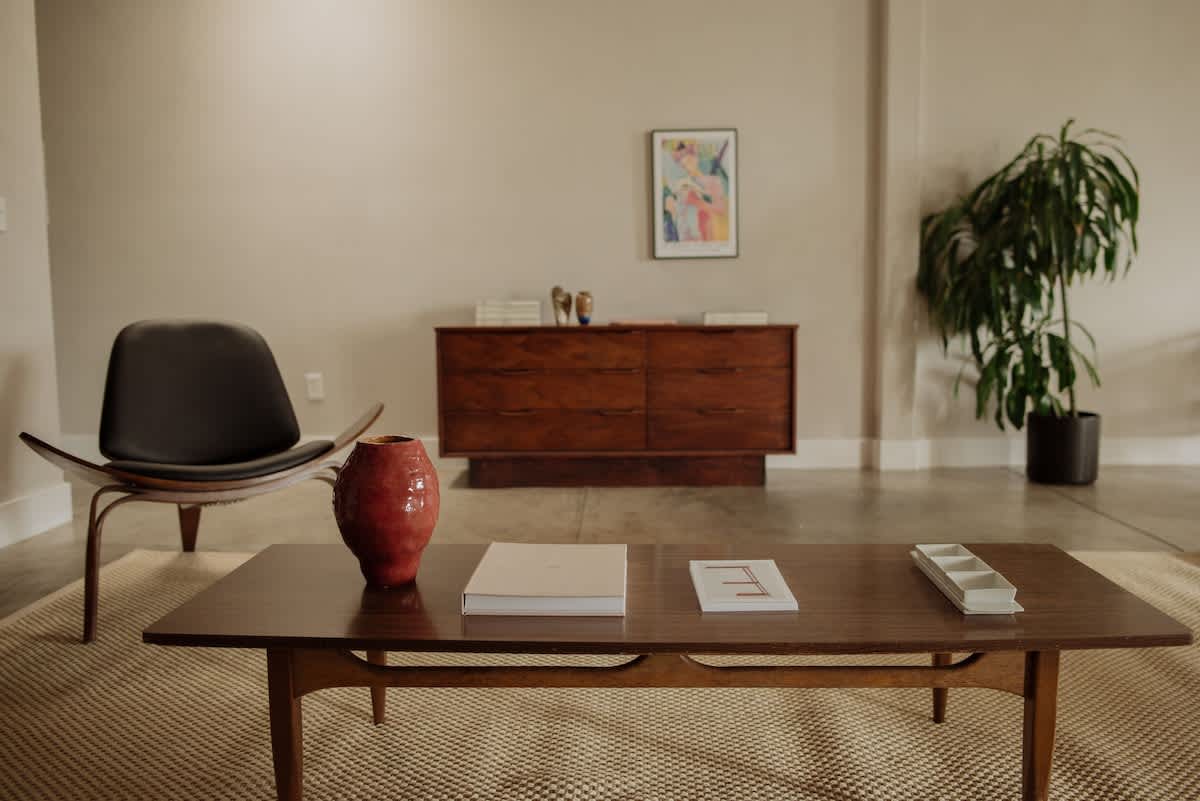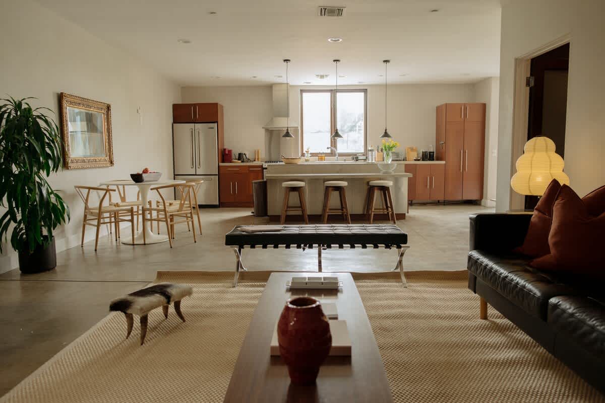 Step into a world of mid-century modern elegance. This top-floor apartment, one of only four lofts in the building, offers generous space and thoughtful design. The living area is perfect for unwinding, while the bedrooms, featuring a king-size and a queen-size bed, provide peaceful retreats. This loft caters to both work and relaxation, with spacious areas designed for productivity and comfort.