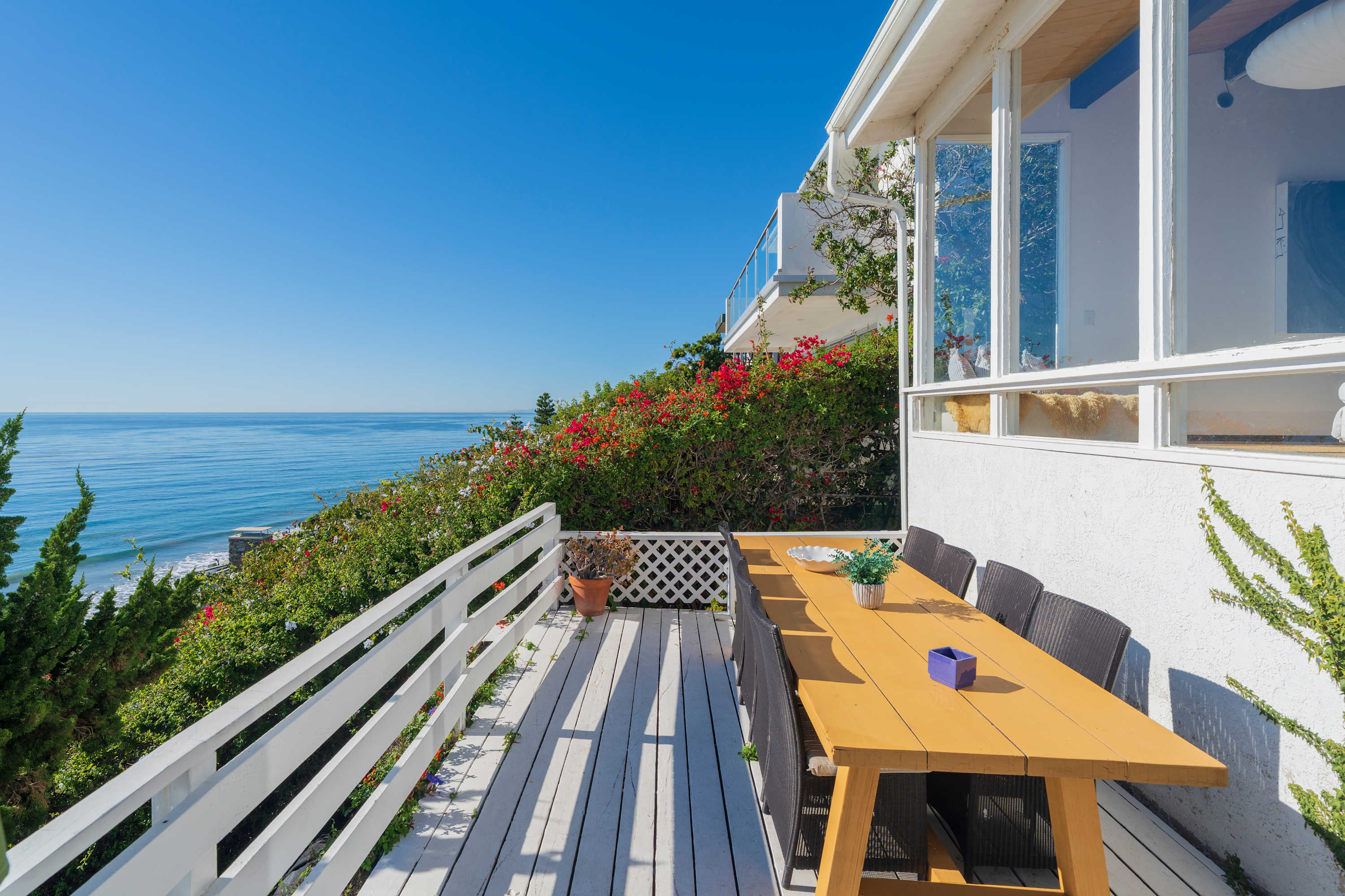 Experience the warmth and character of a true Malibu bungalow—inviting, comfortable, and full of original charm. The spacious living room is designed for relaxing with beautiful ocean views throughout the day. Step outside to the deck for fresh air, dining al fresco, or grilling on the barbecue.